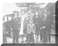 the summer kitchen to see what the Lepack children were doing. We became very good friends with Francis, Alex, Frank, Mona and Ken the last remaining from Joseph =s family. They treated us like we were member of their family and enjoyed frequent visits to the farm. They told us many memoirs of their growing up at the homestead.Picture on right: Back, left to right:: Ales, Joseph Frank. Centre, left to right:: August, Mona, Margaret, Francis and husband Victor Leach. Front: Kenneth Joseph came by difficult times during his life. Their fist home burned in 1937 and the family was forced to live in the barn and sugar cabin. They had to rebuild another house. Which is the house that exists today. In 1949 he had a serious accident. After being gored by a bull he spent much time in the hospital recuperating. Picture The first house build by Andrew which burned in 1937